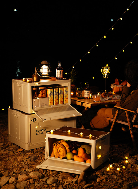 Det inre utrymmet i vikningsboxen är rimligt utformat för att rymma mat, dryck, verktyg och andra viktiga campingartiklar. Flera fack gör det möjligt att lagras i olika kategorier, vilket är lätt att komma åt och sparar söktid. Oavsett om det är en friluftsgrill eller en picknick, har den allt du behöver.
