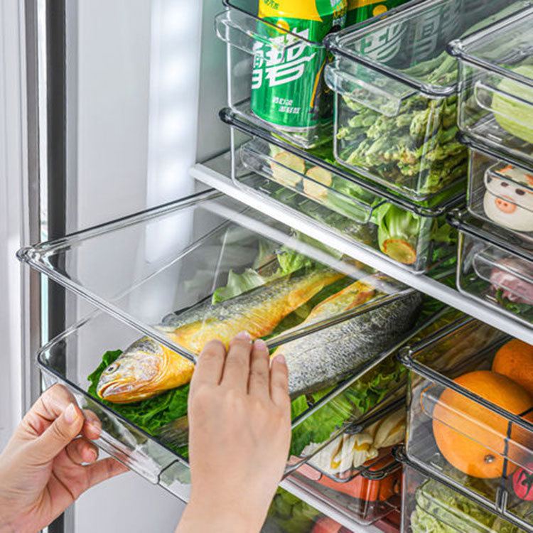 Den viktigaste egenskapen hos den stapelbara förvaringsbehållaren med lock är dess stapelbara design, som effektivt utnyttjar det vertikala utrymmet i kylskåpet, vilket gör att användarna enkelt kan lagra en mängd olika ingredienser, såsom rester, skuren frukt, grönsaker, fryst mat , etc. Varje behållare är utrustad med ett förseglat lock för att säkerställa mattäthet och förhindra inträngning av luft och fukt, vilket förlänger färskheten och hållbarheten för maten. Dessutom tillåter den transparenta materialdesignen användare att snabbt identifiera innehållet i behållaren för enkel åtkomst och för att undvika slöseri.