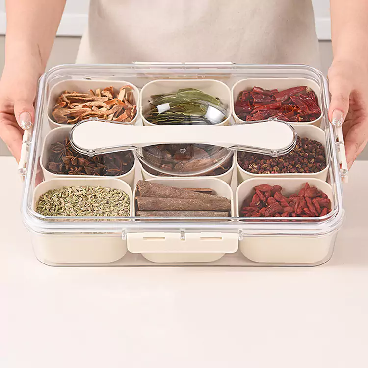 Den enkla designen och eleganta utseendet på Snack Storage Divider Box gör det inte bara praktiskt utan också en skrivbordsdekoration. Det transparenta materialet gör det möjligt för användare att se det interna innehållet i en överblick, så att de snabbt kan hitta de snacks de behöver och förbättra livets bekvämlighet. Den släta ytkonstruktionen för lagringslådan gör rengöring enkel och bekväm. Antingen för hand eller i diskmaskinen tas oljefläckar och rest lätt. När du håller den ren kan du också säkerställa snacks hygien och säkerhet.